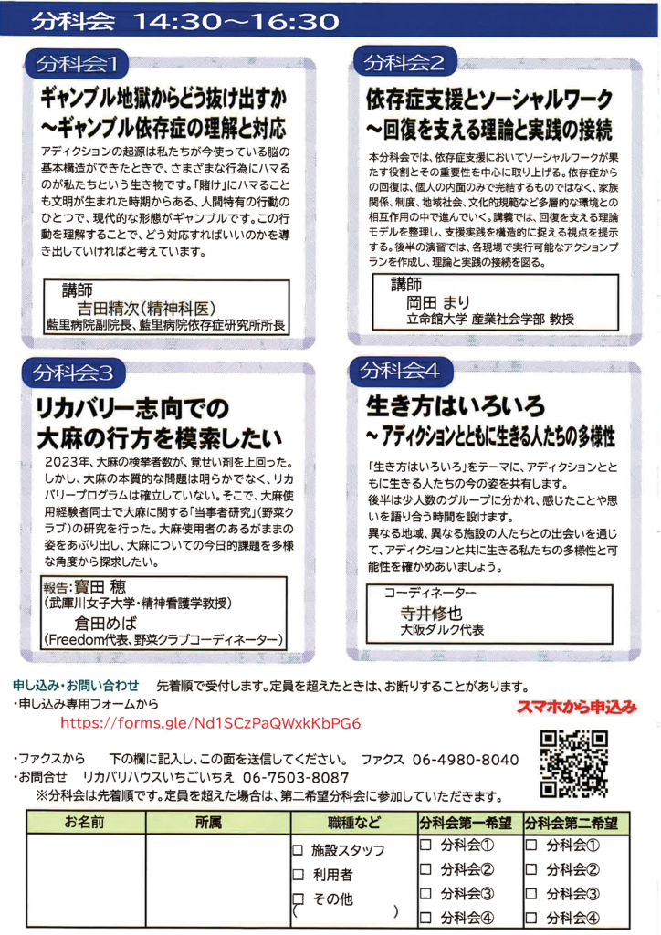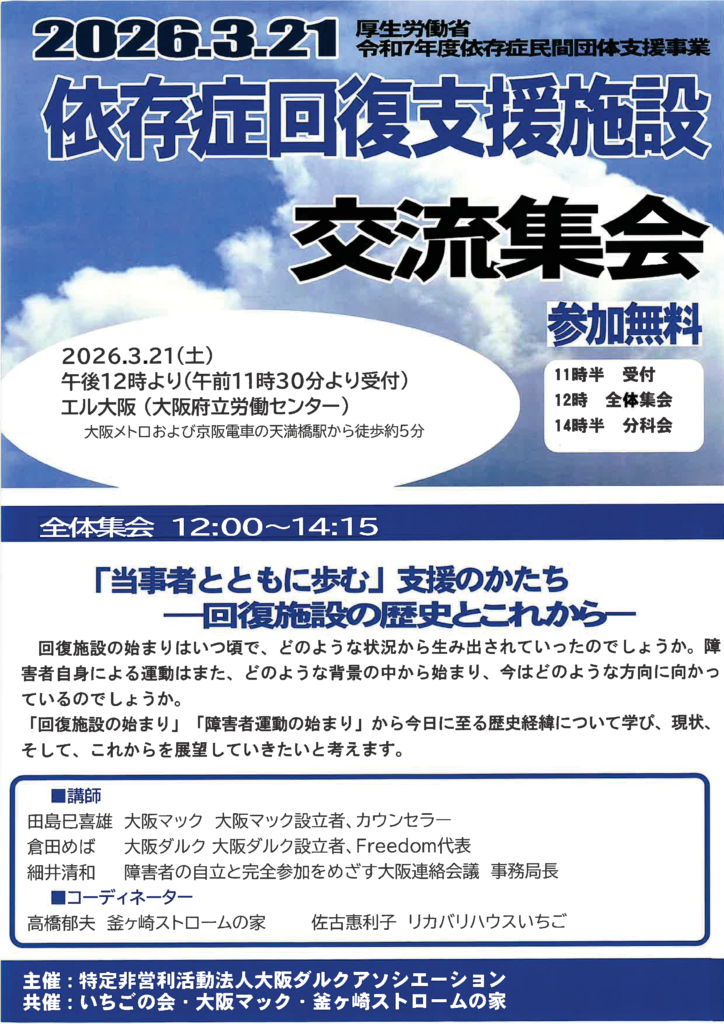 また、定期的にマックプログラムを通して回復している依存症者の仲間の体験談発表を中心とした『マックセミナー』を開催しています。